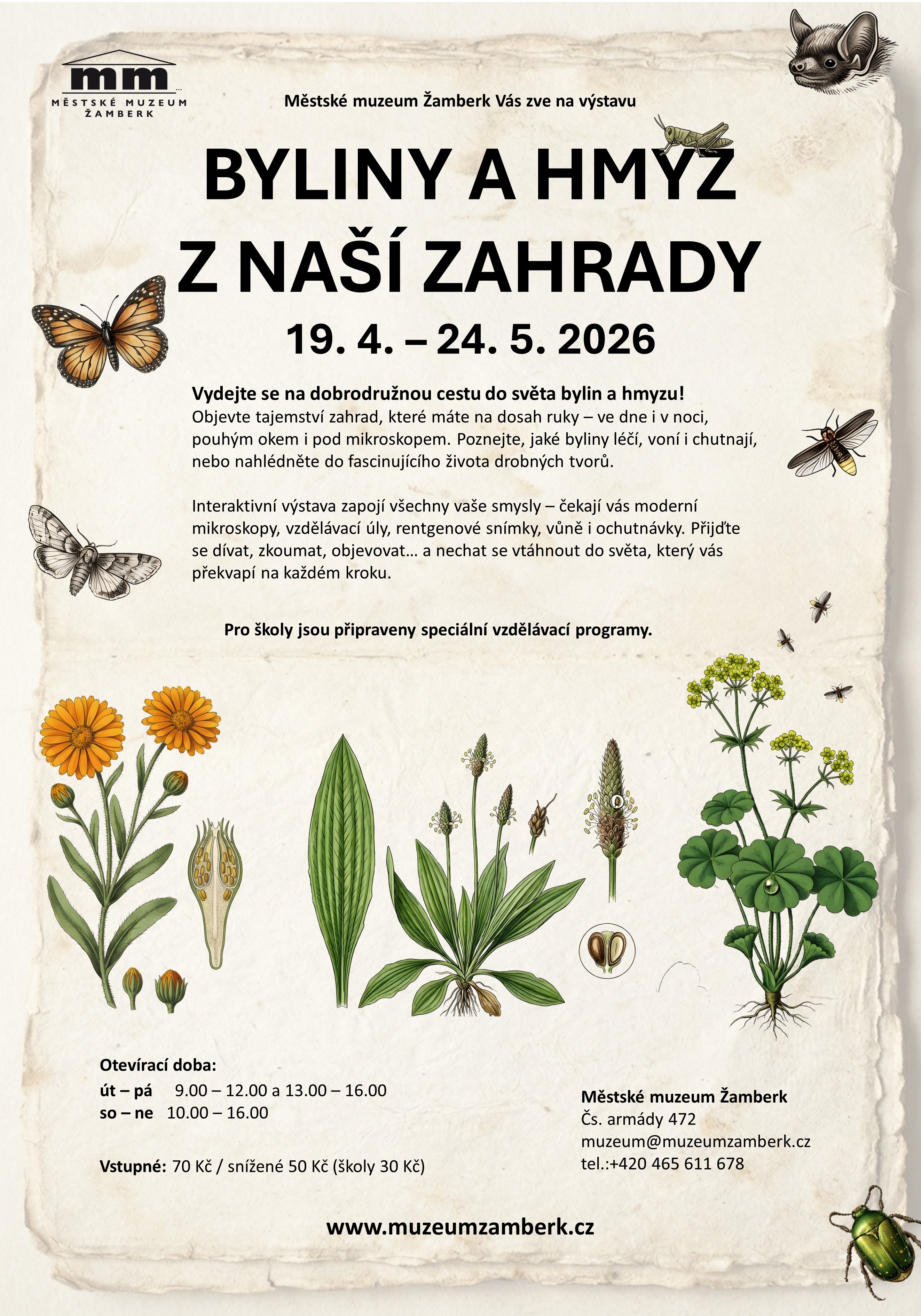 Srdečně vás zveme na slavnostní zahájení naší nové interaktivní výstavy, která vás vtáhne do fascinujícího světa bylin a drobných zahradních obyvatel – všemi smysly!